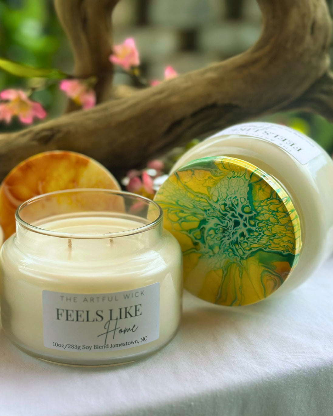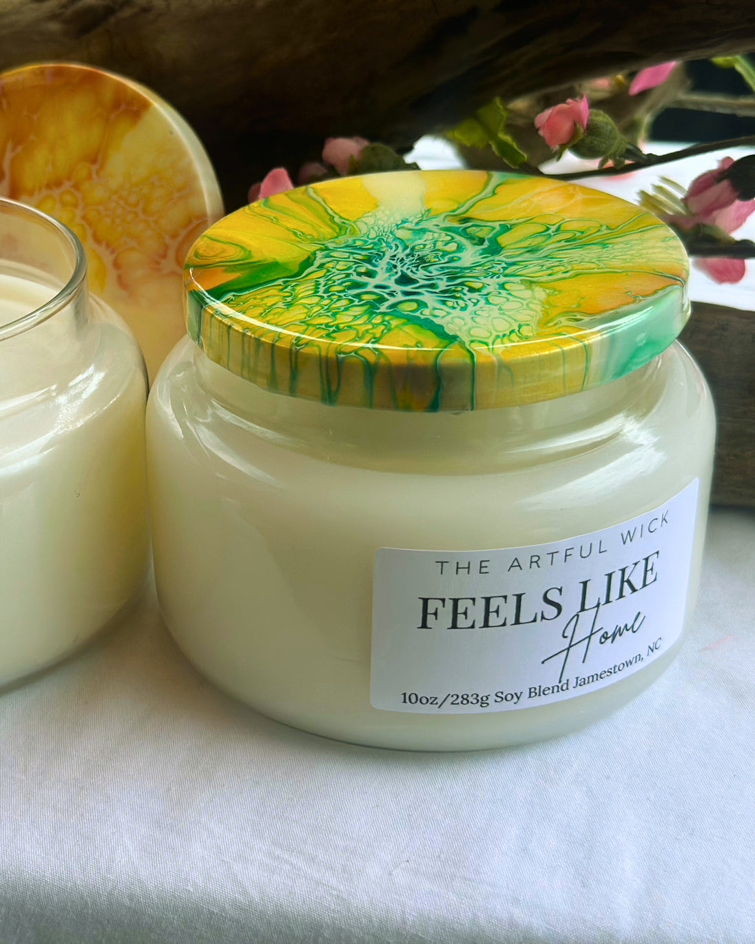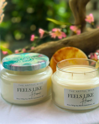 Welcome Home! This double wick candle brings a soothing blend of warm spices, creamy vanilla, and rich woods wraps you in comfort. The perfect scent to embrace the peace of finally arriving in your safe space. Each candle in the Signature Collection features a one of a kind hand-painted lid, sealed with a glossy resin finish—designed to be a lasting keepsake and a miniature work of art that lives on long after the flame fades.
