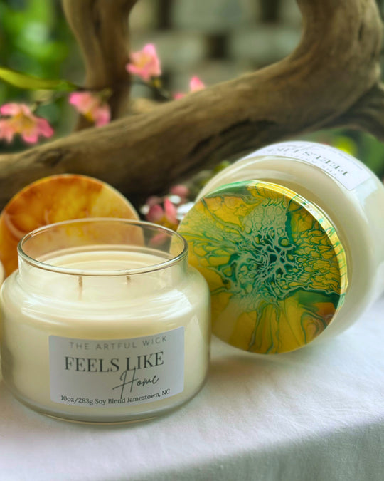 This signature line brings together an ever-evolving palette of fragrances with one-of-a-kind, hand-painted lids—turning each candle into a sensory keepsake. With clean white wax and vibrant, fluid art tops, every piece in The Artful Collection is uniquely yours, even before you light the flame.