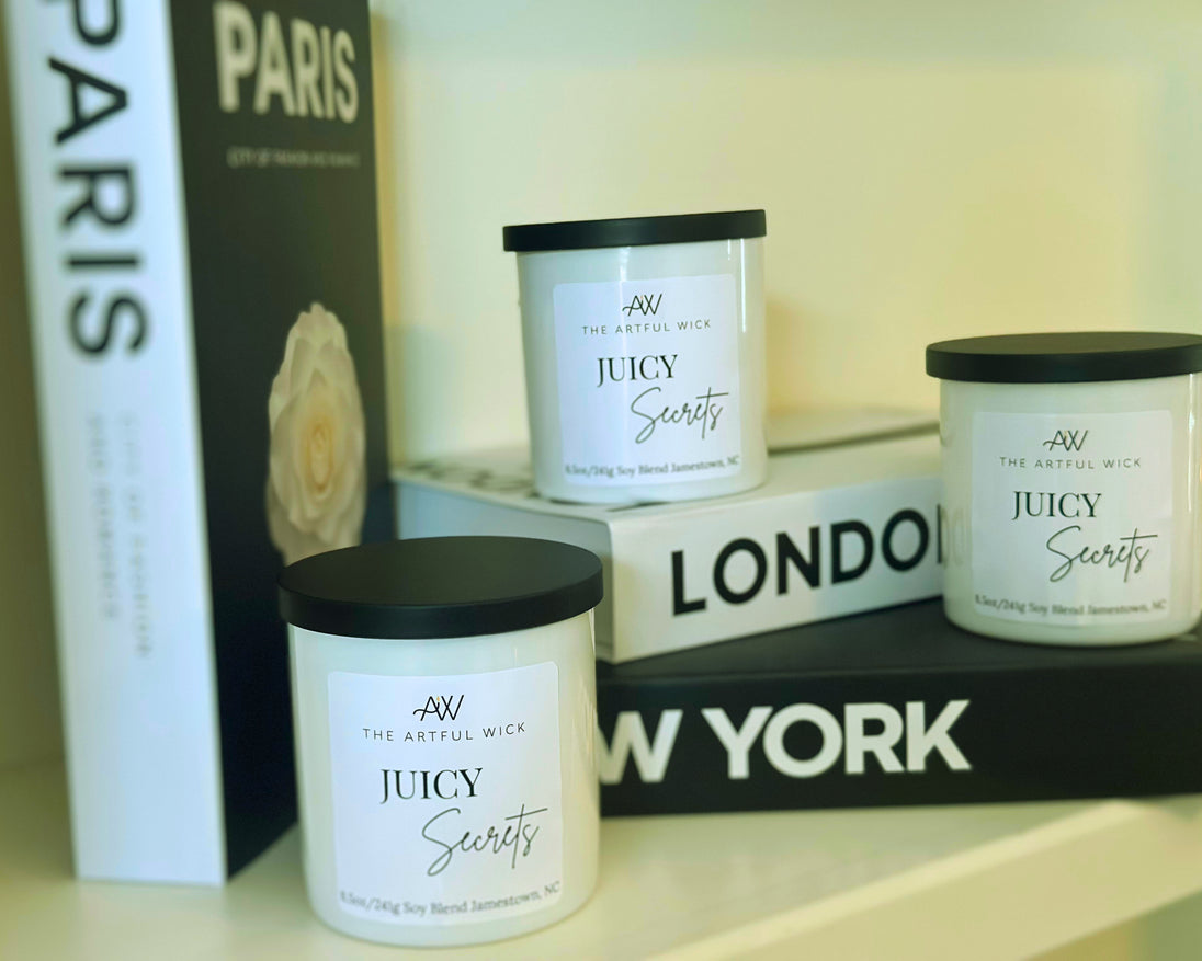 Juicy Secrets is your guilty pleasure in a jar — sweet citrus, cherry charm, and creamy vanilla swirl into a scent that’s as bold and playful as your girls’ night out. Light it when you’re spilling tea, laughing too loud, or indulging in all the things you probably shouldn’t. Because some secrets are meant to be deliciously juicy.